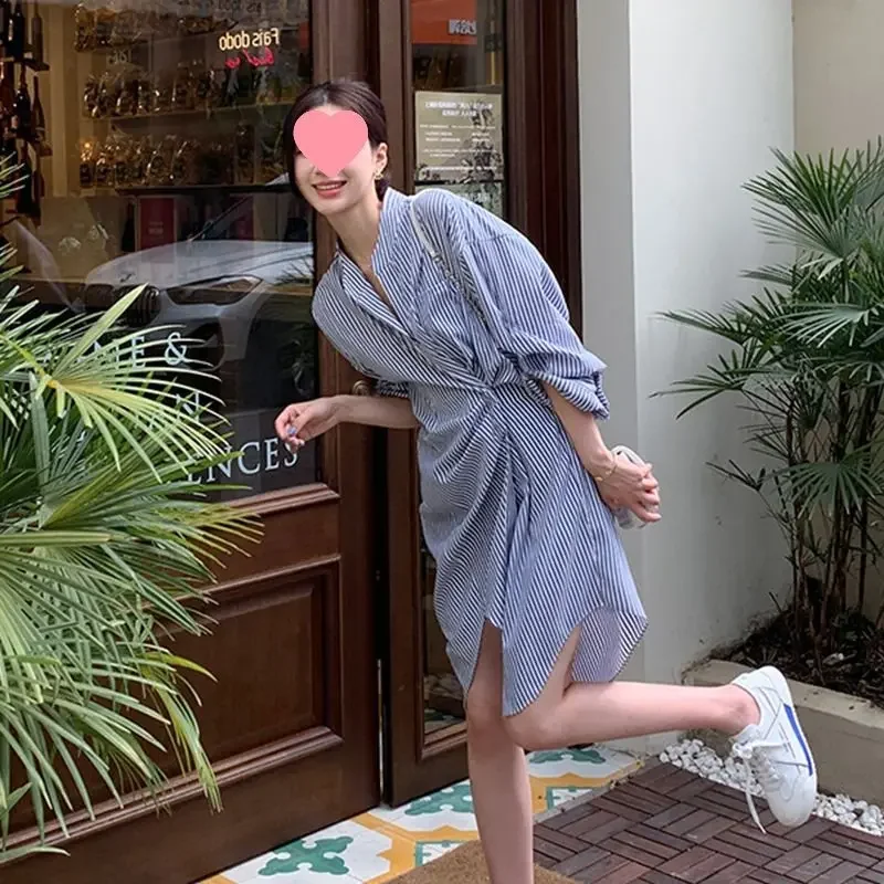 Spring New Design High Waist Long Sleeve Commuter Women’s Dress StripePattern Anti-Aging Lazy Style Chinese Brand AE Stock